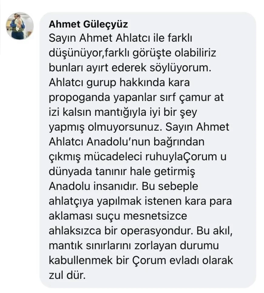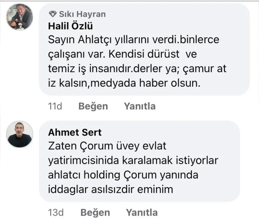 İddiaların kamuoyuna yansımasının ardından özellikle Çorum’da ve iş dünyasında destek mesajları paylaşıldı. Sosyal medya platformlarında yapılan paylaşımlarda, Ahmet Ahlatcı’nın kente yaptığı yatırımlar ve sağladığı istihdam hatırlatıldı.