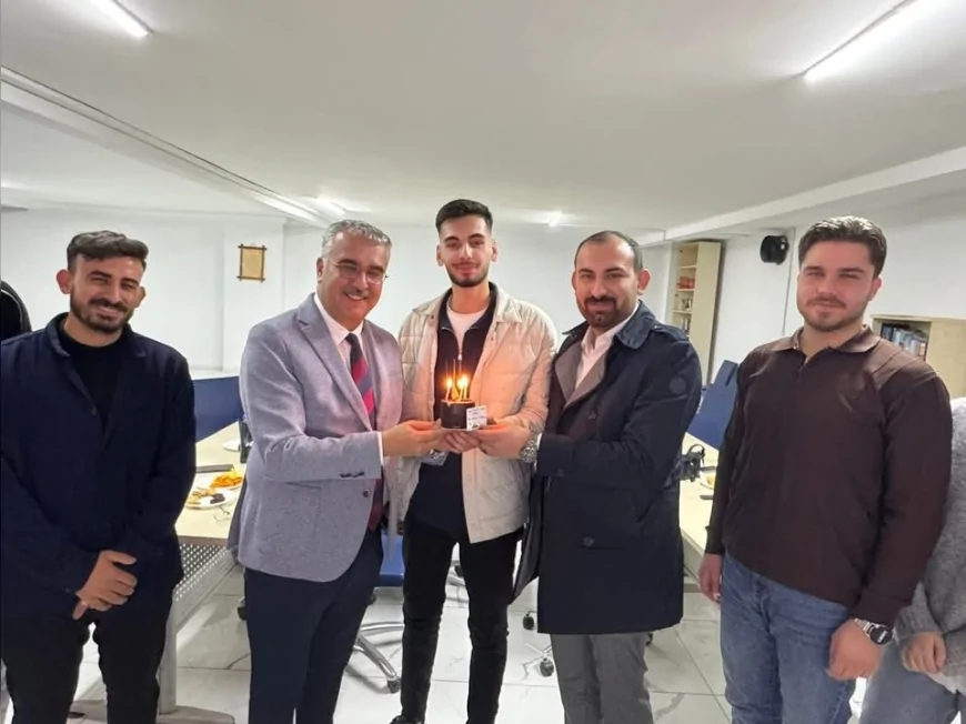 Program sırasında Veysel isimli öğrencinin doğum günü sürprizle kutlandı. Ahlatcı, “Gençlerimizin mutluluklarına ortak olmak, küçük sürprizlerle yüzlerini güldürmek de görevimiz.” dedi.