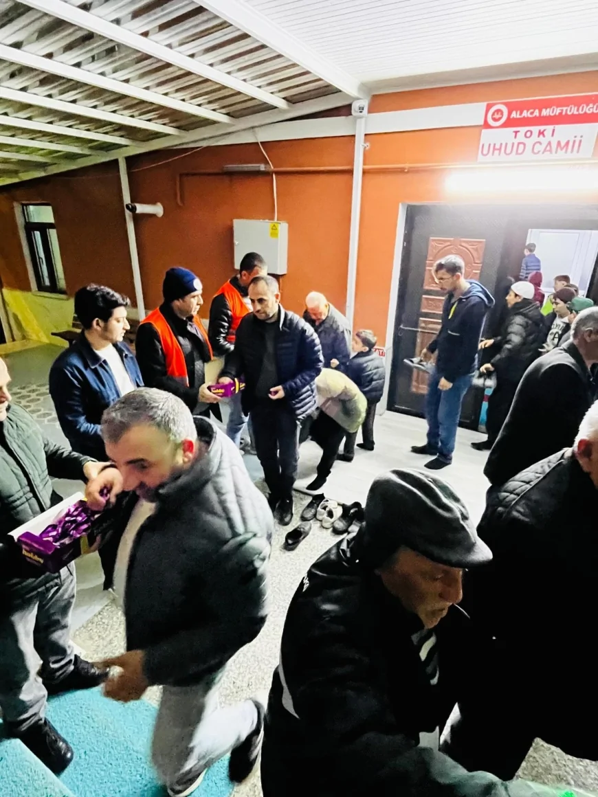 Alaca Belediyesi tarafından yapılan açıklamada, Kadir Gecesi’nin manevi atmosferinin ilçe halkıyla birlikte yaşandığı belirtilerek, camilerde ibadetlerini yerine getiren vatandaşlara çeşitli ikramlar sunulduğu ifade edildi.