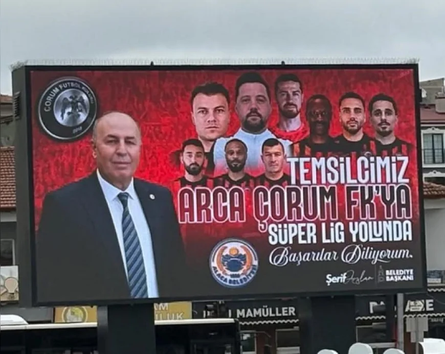 Hazırlanan görsellerde, Alaca Belediye Başkanı Şerif Arslan ile MHP Genel Sekreter Yardımcısı ve Çorum Milletvekili Vahit Kayrıcı yer aldı. Billboardlarda yer alan mesajda, “Temsilcimiz Arca Çorum FK’ya Süper Lig yolunda başarılar diliyorum.” ifadeleri kullanıldı.