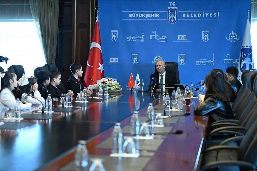 Ankara’da 23 Nisan Ulusal Egemenlik ve Çocuk Bayramı kapsamında gerçekleştirilen geleneksel temsili devir teslim töreninde, Ankara Büyükşehir Belediye Başkanı Mansur Yavaş başkanlık koltuğunu ilkokul ve ortaokul öğrencilerine bıraktı. Büyükşehir Belediyesi’nde düzenlenen programa İl Milli Eğitim Şube Müdürü Ünsal Çolak ile farklı okullardan gelen öğrenciler katıldı.