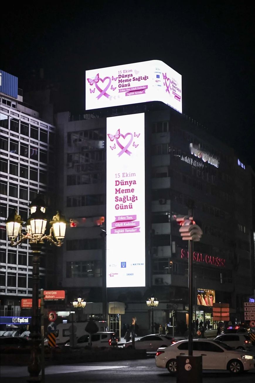 Ankara Büyükşehir Belediyesi, 15 Ekim “Dünya Meme Sağlığı Günü” kapsamında düzenlediği etkinlikle kadın sağlığına dikkat çekti. KETEM, Farkındalığın Gücü Derneği ve Su Elçileri Kanserle Mücadele Derneği iş birliğiyle gerçekleştirilen programda erken teşhisin önemi vurgulanırken, Ankara’nın simgesel yapıları pembe ışıkla aydınlatıldı.