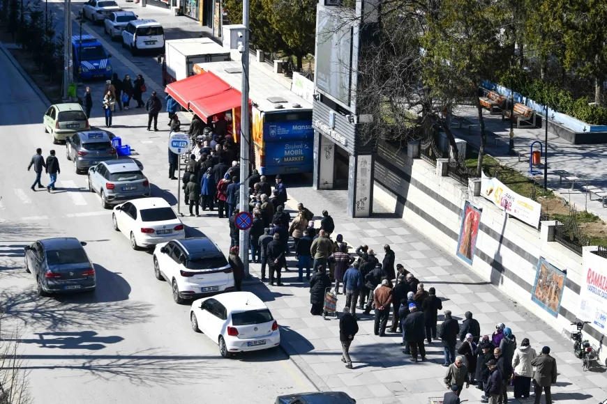 POLATLI’DA MOBİL MARKET ÖNÜNDE YOĞUNLUK OLUŞTU