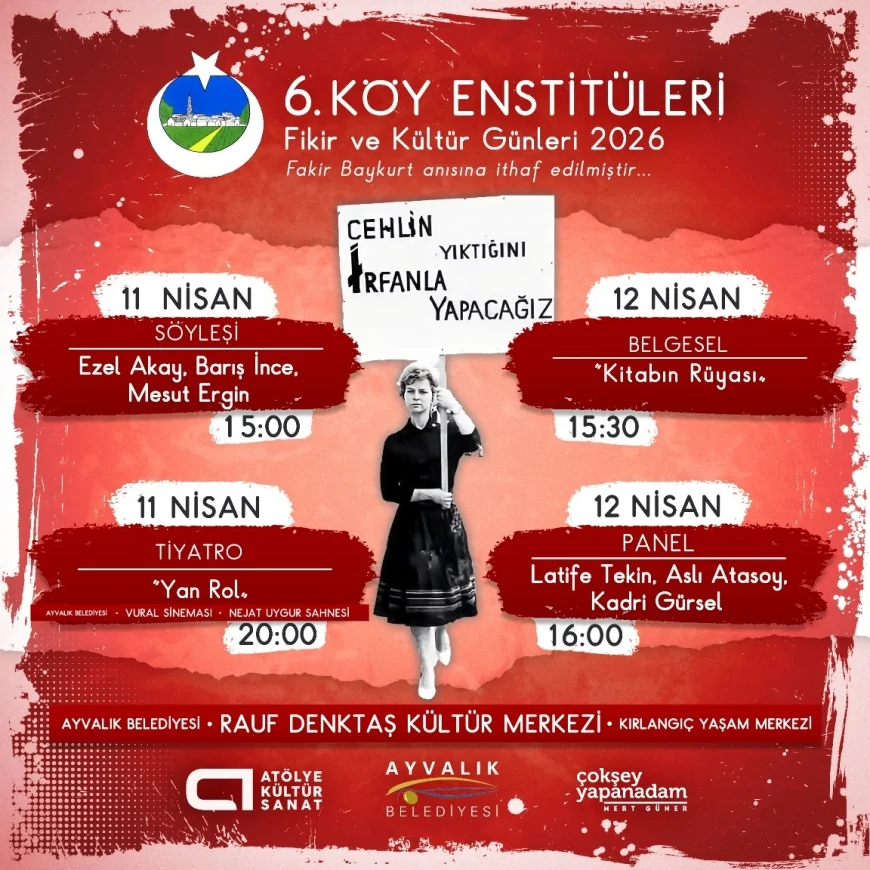 Balıkesir’in Ayvalık ilçesinde, yazar Fakir Baykurt anısına düzenlenen 6. Köy Enstitüleri Fikir ve Kültür Günleri 11-12 Nisan tarihlerinde gerçekleştirilecek. Eğitim, bilim, kültür ve sanat başlıklarının ele alınacağı etkinliklerde söyleşi, tiyatro ve panel programlarıyla geniş katılım hedefleniyor.