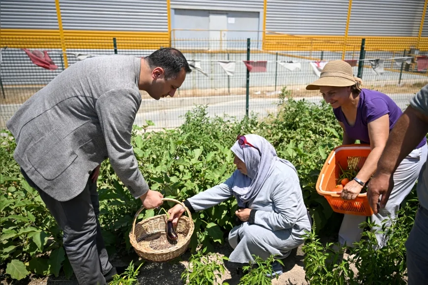 EVKA-4 Kent Bostanı’nda üretim yapan Mine Aynur Sarıyel, “Annemizden babamızdan bir tarla kalmadı ama Ömer Başkanımız burayı bize verdi. Burayı ekip biçiyoruz, çok güzel zaman geçiriyoruz. Burada sosyalleşiyor, arkadaşlıklar kuruyoruz.” dedi.