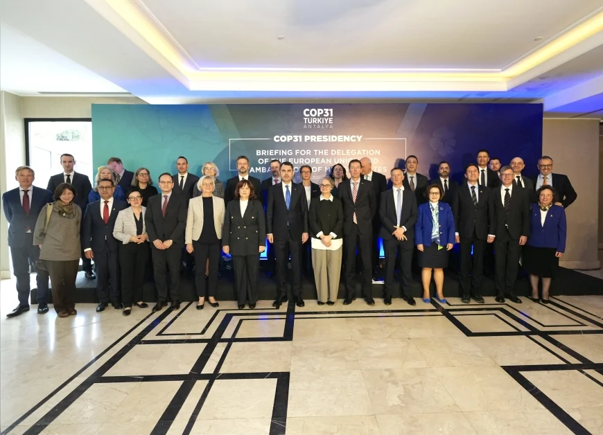 COP31 Başkanı ve Çevre, Şehircilik ve İklim Değişikliği Bakanı Murat Kurum, 17 Mart 2026’da Ankara’da Avrupa Birliği Delegasyonu ve üye ülkelerin büyükelçileriyle bir araya gelerek Türkiye’nin COP31’e ev sahipliği sürecine ilişkin kapsamlı bir sunum gerçekleştirdi. Toplantıda Türkiye’nin iklim diplomasisindeki öncelikleri ve Avrupa ile iş birliği perspektifi ele alındı.