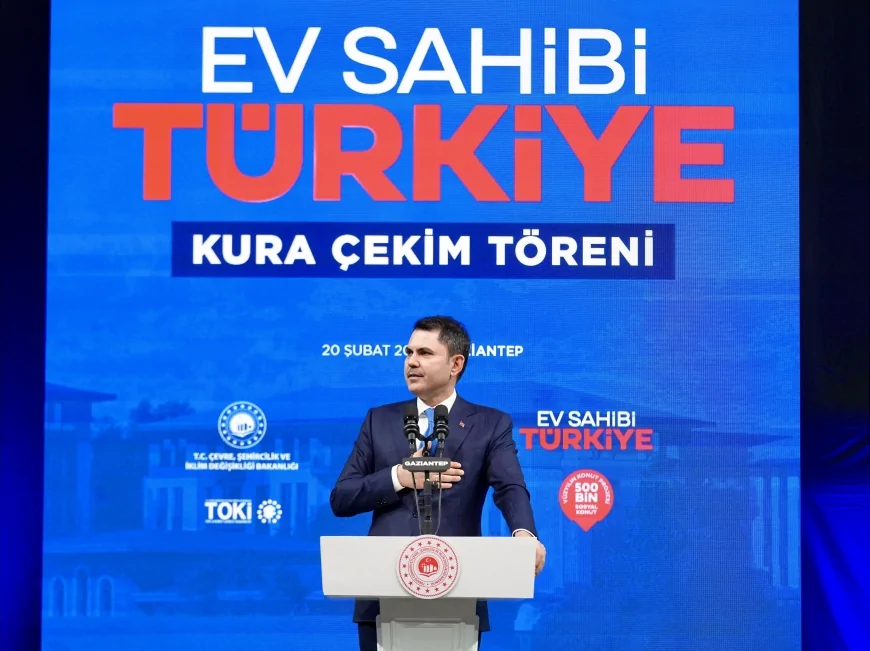 Çevre, Şehircilik ve İklim Değişikliği Bakanı Murat Kurum, Gaziantep’te düzenlenen “Ev Sahibi Türkiye” kura çekim törenine katıldı. Noter huzurunda gerçekleştirilen törende 13 bin 890 konutun hak sahipleri belirlendi.