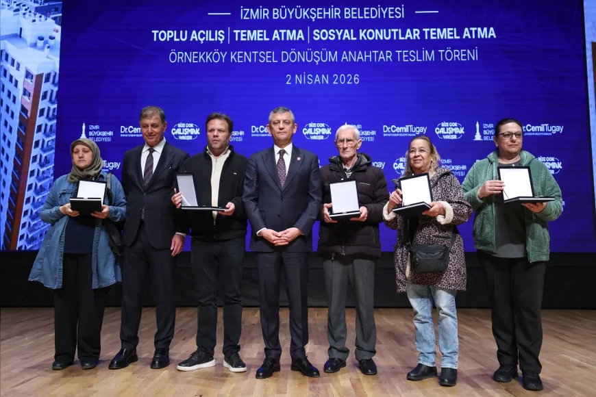 Cumhuriyet Halk Partisi Genel Başkanı Özgür Özel, 2 Nisan 2026 tarihinde İzmir Büyükşehir Belediyesi tarafından düzenlenen toplu açılış, Menemen konutları temel atma ve Örnekköy 4. etap anahtar teslim törenine katıldı. İzmir’de konuşan Özel, hem sosyal politikalar hem de kentsel dönüşüm süreçlerine ilişkin önemli mesajlar verdi.