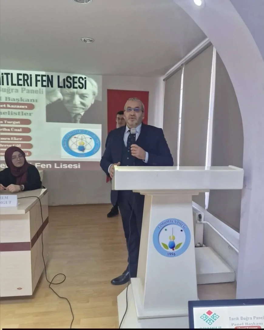 Çorum 15 Temmuz Şehitleri Fen Lisesi’nde Anadolu Mektepleri okumaları kapsamında gerçekleştirilen Tarık Buğra Paneli’nde öğrenciler, yazarın eserlerini tarih, empati, aydın kimliği, kişilik analizleri ve sorumluluk vurgusu çerçevesinde ele aldı. Programa İl Milli Eğitim Müdürü Cemil Çağlar ile Belediye Başkan Yardımcısı Turhan Candan da katıldı.