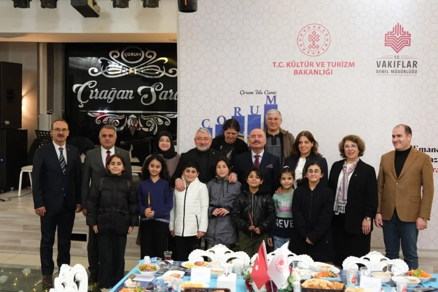 Vakıflar Genel Müdürlüğü tarafından Çorum Çırağan Sarayı’nda düzenlenen geleneksel iftar programı yoğun katılımla gerçekleştirildi. “Asırları Aşan Hayır Bu Sofrada” temasıyla düzenlenen programda vatandaşlar ve protokol üyeleri aynı sofrada buluştu.