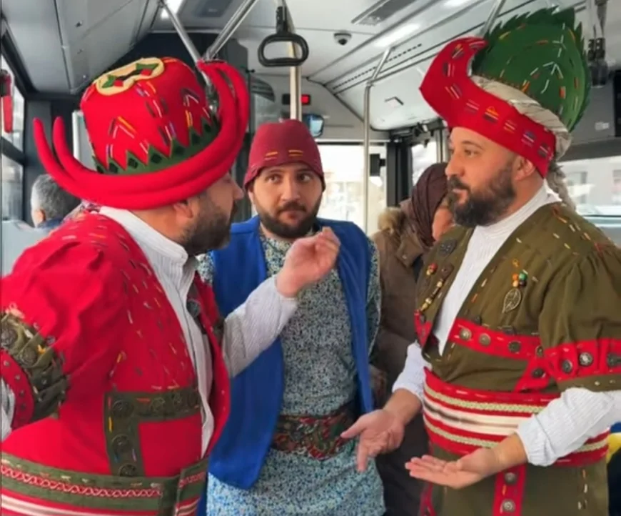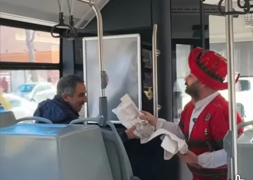 İftar saatinin yaklaşmasıyla birlikte belediye ekipleri, belediye otobüslerinde yolculuk yapan vatandaşlara sıcak pide ikram etti. Dağıtım sırasında Hacivat ve Karagöz’ün kendi aralarındaki tatlı atışmalar ve esprili diyaloglar yolculara keyifli anlar yaşattı.