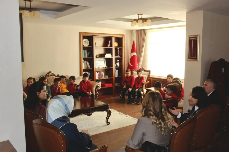 Çorum’un Dodurga ilçesinde Mustafa Kemal İlkokulu öğrencileri, meslek tanıtımı çalışmaları kapsamında Dodurga Kaymakamlığı makamını ziyaret etti. Öğrenciler, Kaymakam Gizem Tokur ile bir araya gelerek kaymakamlık mesleğine ilişkin merak ettikleri soruları yöneltti.