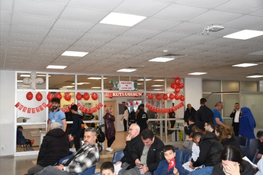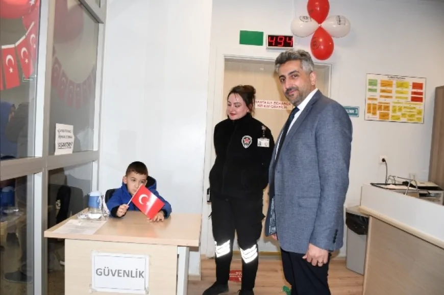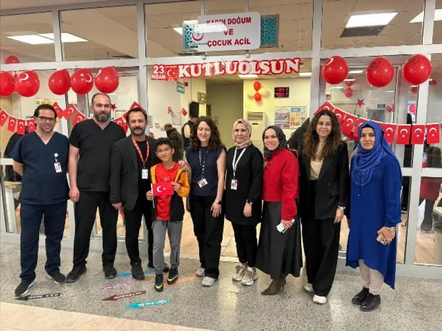 Çocuk acil servisinin bayram kapsamında bayraklar ve balonlarla donatıldığı etkinlikte, sağlık çalışanları da çocukların sevincine eşlik etti. Serviste renkli görüntüler oluşurken, çocuklar dağıtılan bayraklarla bayram coşkusunu yaşadı.