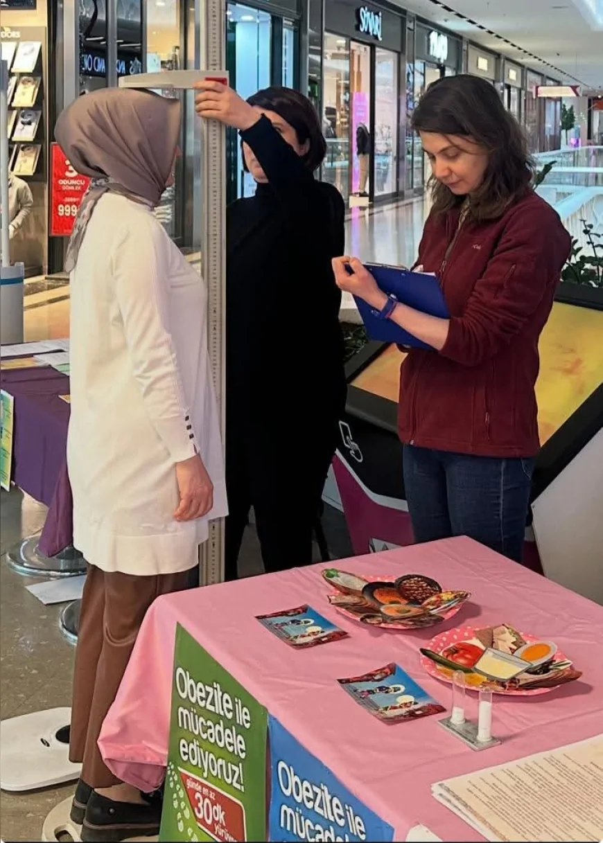Ziyaretçilere dengeli menü planlaması, günlük enerji ihtiyacına uygun beslenme düzeni oluşturma, boy-kilo ölçümü ve beden kitle indeksi değerlendirmesi konularında birebir danışmanlık verildi. Ayrıca yeterli sıvı tüketiminin önemi ile tuz tüketiminin sınırlandırılması ve hipertansiyonla ilişkisi hakkında bilgilendirme yapıldı.