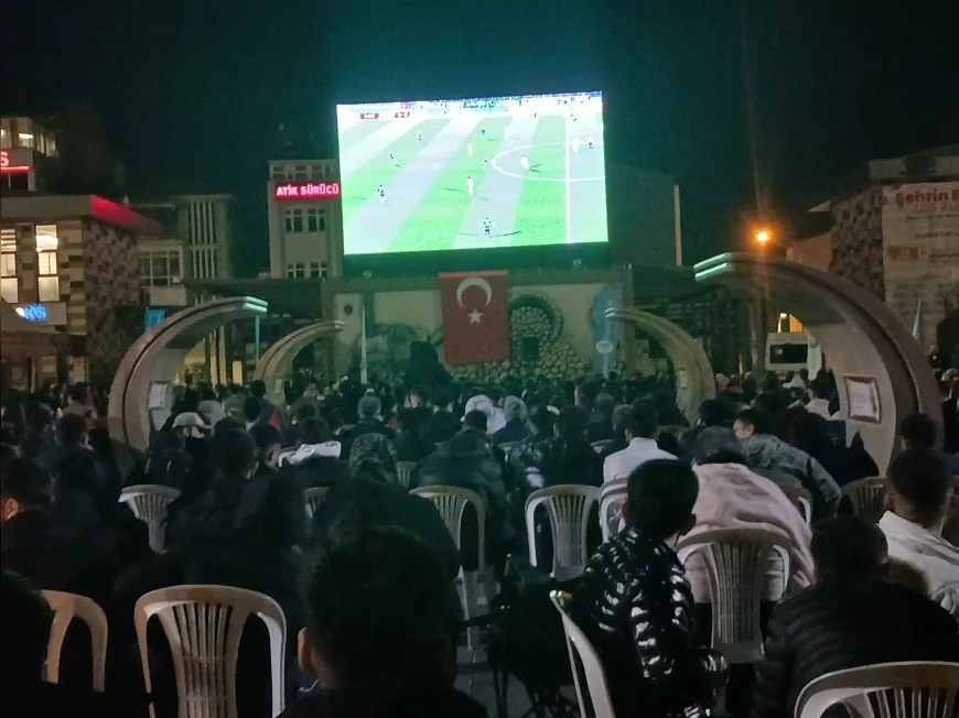 Karşılaşma süresince meydanda toplanan kalabalık, dev ekran önünde tezahüratlar eşliğinde takıma destek verdi. İlk yarısı golsüz tamamlanan mücadelede, ikinci yarıda gelen golle birlikte alandaki coşku giderek arttı.