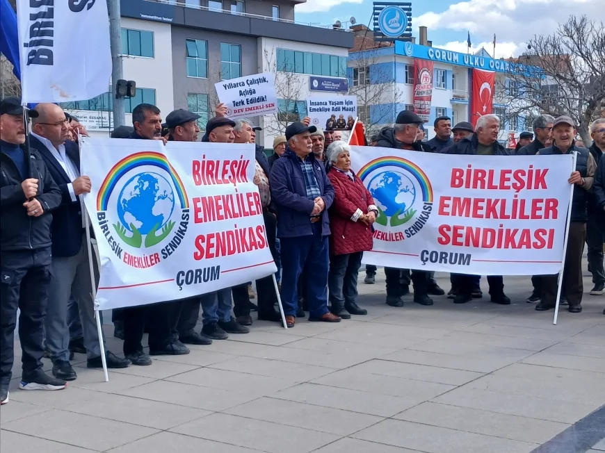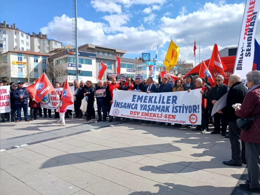 Birleşik Emekliler Sendikası Çorum Şubesi ile DİSK Emekli-Sen Çorum İl Temsilciliği tarafından Çorum Kadeş Meydanı’nda düzenlenen kitlesel basın açıklamasında emeklilerin yaşadığı ekonomik zorluklar ve talepleri gündeme getirildi. Sendika temsilcileri, artan hayat pahalılığı, düşük emekli maaşları ve bayram ikramiyelerinin yetersizliği konusunda çağrıda bulundu.