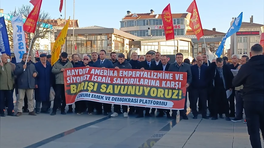 Çorum Kadeş Meydanı’nda düzenlenen basın açıklamasında ABD ve İsrail’in İran’a yönelik saldırıları protesto edildi. NATO ve emperyalist politikalara tepki gösterilen açıklamada, işçi ve emekçilerin birlik mücadelesini büyütme çağrısı yapıldı.