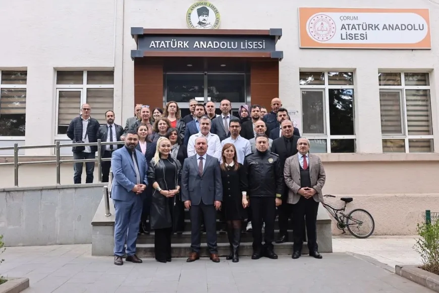 Çorum Valisi Ali Çalgan, Vali Yardımcısı Yeliz Mercan, İl Emniyet Müdürü Arif Pehlivan ve İl Milli Eğitim Müdürü Cemil Çağlar ile birlikte Atatürk Anadolu Lisesi ve Ahmet Tevfik İleri Ortaokulu’nu ziyaret ederek okul güvenliği kapsamında yürütülen çalışmaları yerinde inceledi.