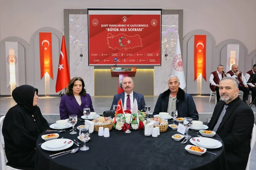 Çorum’da Ramazan ayının ilk gününde, şehit aileleri ve gaziler onuruna “Büyük Aile” iftar programı düzenlendi. Çorum Valiliği ev sahipliğinde gerçekleştirilen programa Çorum Valisi Ali Çalgan ve eşi Halide Çalgan, Çorum Milletvekilleri Yusuf Ahlatcı ve Mehmet Tahtasız ile protokol üyeleri katıldı.