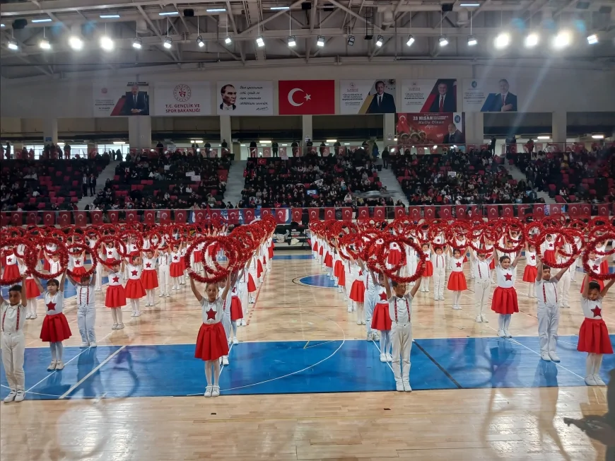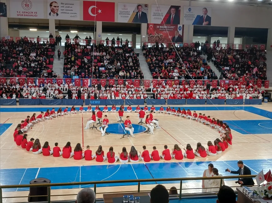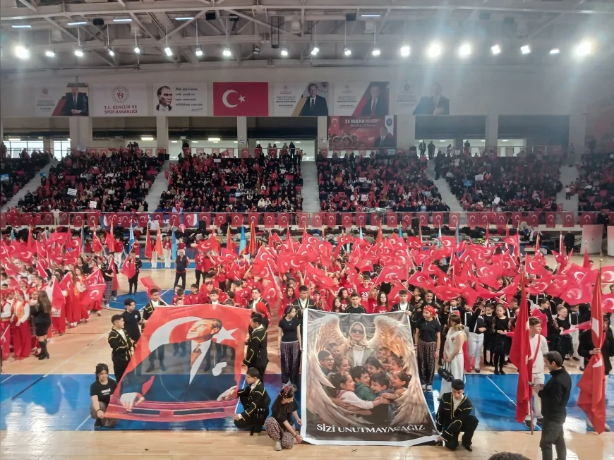 Kutlamalar Çorum Yeni Spor Salonu’nda devam etti. Öğrenciler tarafından hazırlanan gösteriler izleyicilerden yoğun alkış aldı. Veliler ve vatandaşlar ellerinde Türk bayraklarıyla salonu doldurarak bayram coşkusuna ortak oldu.