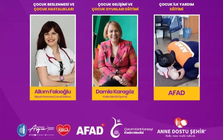 Çorum Belediyesi tarafından hayata geçirilen “Büyük Anne Okulu” projesi kapsamında 55-75 yaş aralığındaki büyükannelere çocuk beslenmesi, ilk yardım, oyunla gelişim ve çocuk sağlığı konularında eğitim verilecek. Proje ile kuşaklar arası bağların güçlendirilmesi ve torunların daha sağlıklı, güvenli bir ortamda yetişmesine katkı sağlanması hedefleniyor.