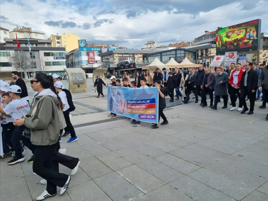 7 Nisan Dünya Sağlık Günü kapsamında Çorum’da İl Sağlık Müdürlüğü ve Gençlik ve Spor İl Müdürlüğü koordinasyonunda düzenlenen yürüyüşte yüzlerce vatandaş bir araya geldi, Kadeş Barış Meydanı’ndan Hanönü Meydanı’na uzanan etkinlikte obeziteye karşı sporun önemi vurgulandı.