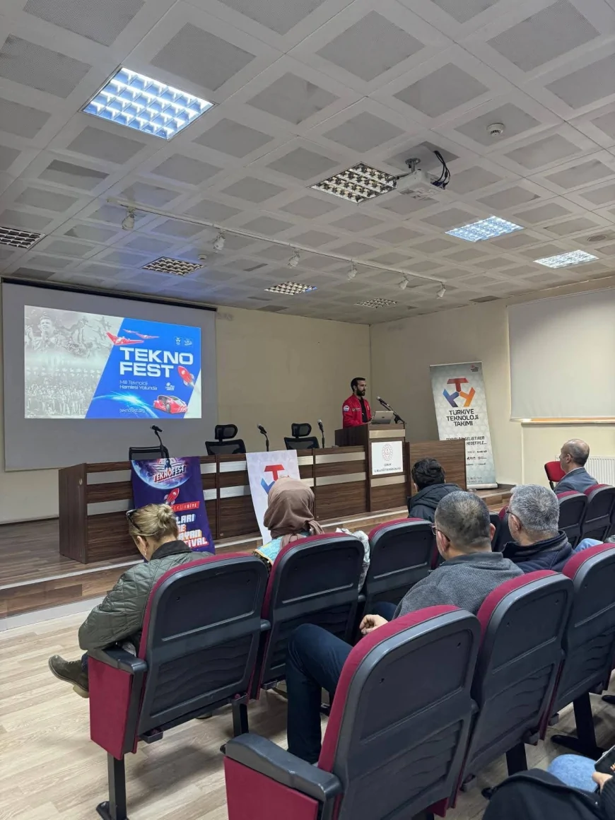 Bilgilendirme toplantısında konuşan T3 Vakfı Amasya ve Çorum Sorumlusu Oğuzhan Özdemir, TEKNOFEST’in yarışma kategorileri, başvuru takvimi ve proje geliştirme süreçleri hakkında detaylı sunum yaptı. Özdemir, “TEKNOFEST yalnızca bir yarışma değil, gençlerin üretim becerilerini geliştiren büyük bir teknoloji platformudur.” dedi.