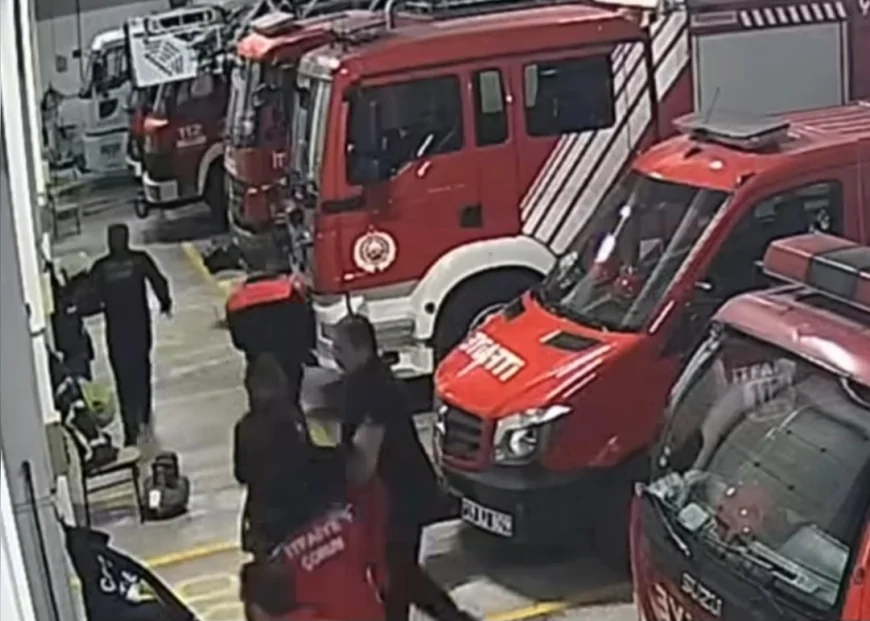 Akşam yemeği sırasında gelen ihbar üzerine ekipler hiç vakit kaybetmeden harekete geçti. İtfaiye personelinin saniyeler içinde araçlara yönelerek istasyondan çıkış yaptığı anlar güvenlik kamerasına yansıdı.