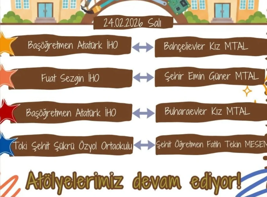 Program süresince meslek lisesi öğrencileri de deneyimlerini paylaşacak. Atölyelerde yürütülen çalışmaların uygulamalı olarak tanıtılacağı etkinlikte, ortaokul öğrencilerinin farklı alanları yakından görmeleri sağlanacak.
