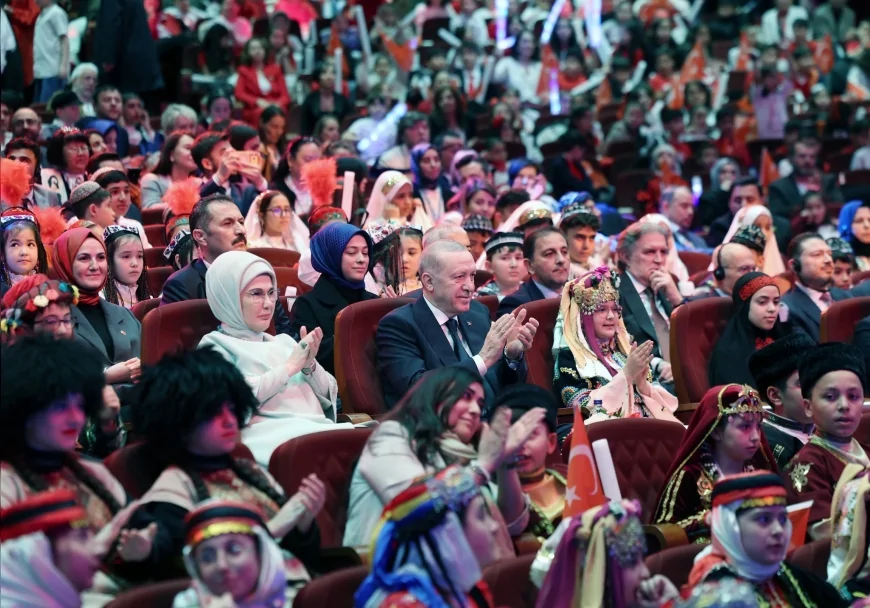 Programda sahne alan çocukların performanslarına dikkat çeken Erdoğan, “Sahnedeki emekleri ve içtenlikleriyle kalplerimize dokunan tüm çocuklarımızı gönülden tebrik ediyorum.” dedi.