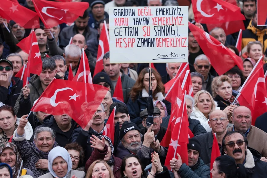 Özel, emekli maaşları ve alım gücü tartışmasını “ekmek hesabı” üzerinden anlattı. Erdoğan’ın geçmişte söylediğini aktardığı ifadeye atıf yapan Özel, “Erdoğan, ‘Daha az ekmek alırsanız bana beddua edin’ demişti… 3 yılda 200 ekmek kaybettik; beddua değil dua ediyoruz, AK Parti’nin kara düzeninden kurtulmak için.” dedi. Konuşmasında TÜİK verileri üzerinden de eleştiriler yönelten Özel, “TÜİK’i biliyor musunuz? Neyin kısaltması bu TÜİK? Tayyip’i üzmeyen istatistik kurumu.” sözlerini kullandı; CHP iktidarında en düşük emekli maaşına ilişkin “önce bir asgari ücret, sonra 1,5 asgari ücret olacak” ifadesini dile getirdi.