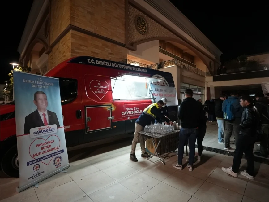 Denizli Büyükşehir Belediyesi Sosyal Hizmetler Dairesi Başkanlığı koordinasyonunda yürütülen çalışma kapsamında mobil ikram araçları, Ramazan ayı boyunca cami önlerinde hizmet veriyor. Belediye tarafından yapılan bilgilendirmede, uygulamanın “vatandaşların iftar sonrası vakitlerini daha anlamlı bir şekilde değerlendirmelerine katkı sağlamak” amacıyla gerçekleştirildiği ifade edildi.