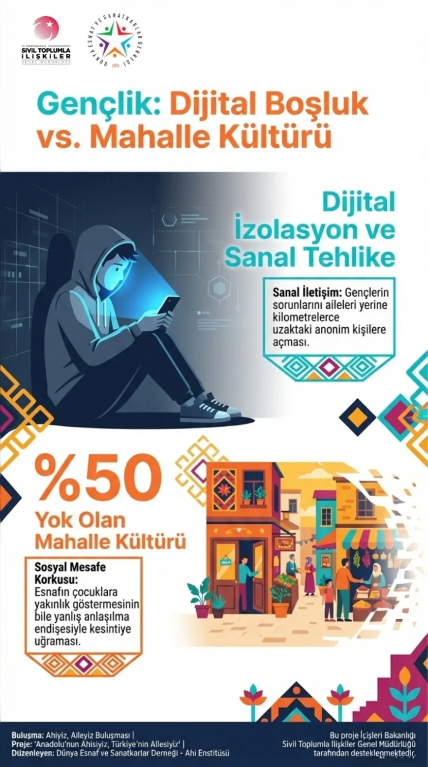 Çocuklar ve gençler açısından dijital bağımlılık, sosyal izolasyon ve madde kullanımı önemli riskler arasında gösterildi. Mahalle kültürünün zayıfladığına dikkat çekilerek, esnafın “sosyal denetim mekanizması” rolünün yeniden güçlendirilmesi gerektiği belirtildi.