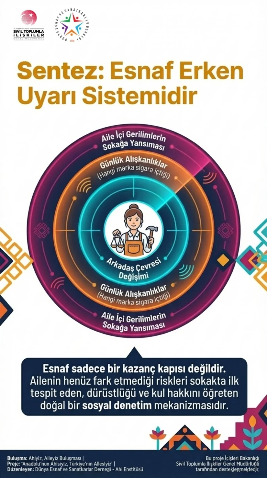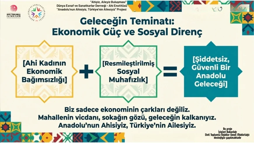 Dünya Esnaf ve Sanatkarlar Derneği Ahi Enstitüsü, “Anadolu’nun Ahisiyiz, Türkiye’nin Ailesiyiz” projesi kapsamında Türkiye’de ilk kez esnaf ve sanatkar odalarının 13 kadın başkanını bir araya getiren “Ahiyiz, Aileyiz Buluşması”nın stratejik sonuç raporunu yayımladı. 2 Nisan 2026 tarihinde gerçekleştirilen ve beş oturumdan oluşan zirvede, aile yapısının korunmasından gençlerin bağımlılıkla mücadelesine kadar geniş başlıklar ele alındı.