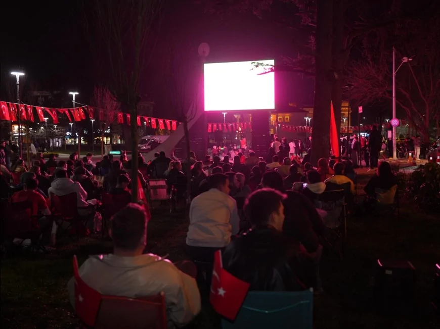 Düzce Belediyesi, 2026 FIFA Dünya Kupası Avrupa Elemeleri play-off finalinde Türkiye A Milli Futbol Takımı’nın Kosova ile oynadığı karşılaşmayı Millet Bahçesi’nde kurduğu dev ekranda vatandaşlarla buluşturdu. Milli maç heyecanı, Düzce’de yoğun katılımla takip edildi.