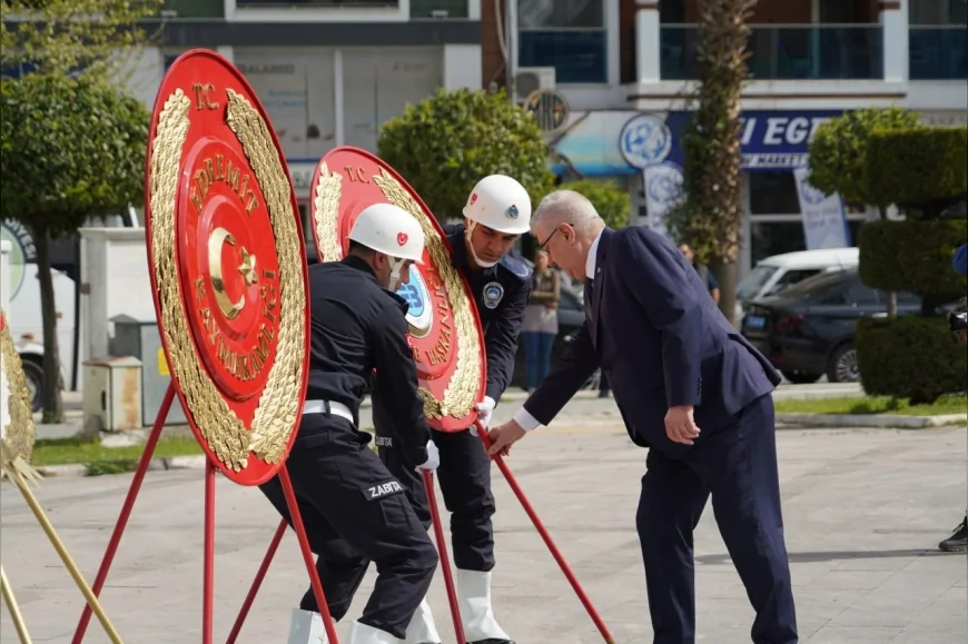 Program kapsamında Kaymakam Ahmet Odabaş, Garnizon Komutanı Vekili Mehmet Kurt ve Belediye Başkanı Mehmet Ertaş tarafından Atatürk Anıtı’na çelenk sunuldu. Saygı duruşu ve İstiklal Marşı’nın okunmasının ardından günün anlam ve önemine ilişkin konuşmalar yapıldı.