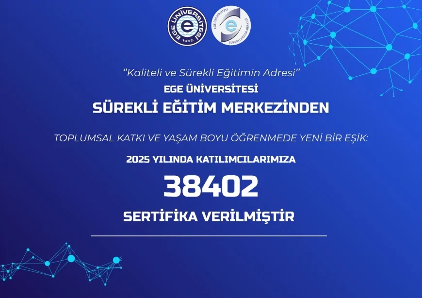 Ege Üniversitesi Sürekli Eğitim Merkezi (EGESEM), 2025 yılı boyunca düzenlediği 127 farklı eğitim programı ile toplumun farklı kesimlerinden 38 bin 402 katılımcıya sertifika verdi. Merkez Müdürü Dr. Öğr. Üyesi Hatice Deniz Canoğlu, üniversitenin akademik birikimini yaşam boyu eğitim anlayışıyla toplumun her kesimine ulaştırmayı sürdürdüklerini açıkladı.