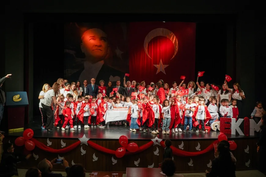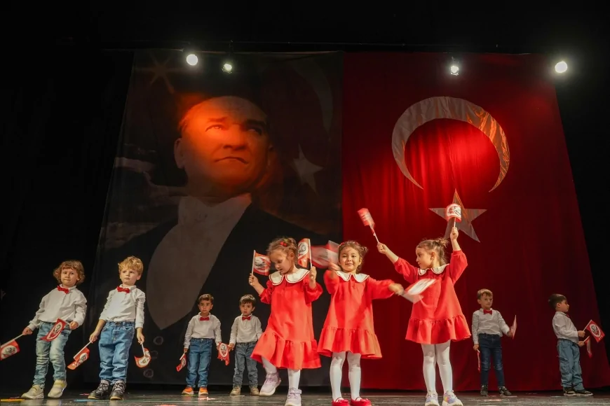 Atatürk baskılı tişörtler giyen, Türk bayrakları ve kırmızı-beyaz kıyafetlerle sahne alan çocuklar, hazırladıkları koreografilerle büyük beğeni topladı. İzleyenler, miniklerin enerjisi ve Cumhuriyet sevgisini yansıtan performanslarını uzun süre alkışladı.