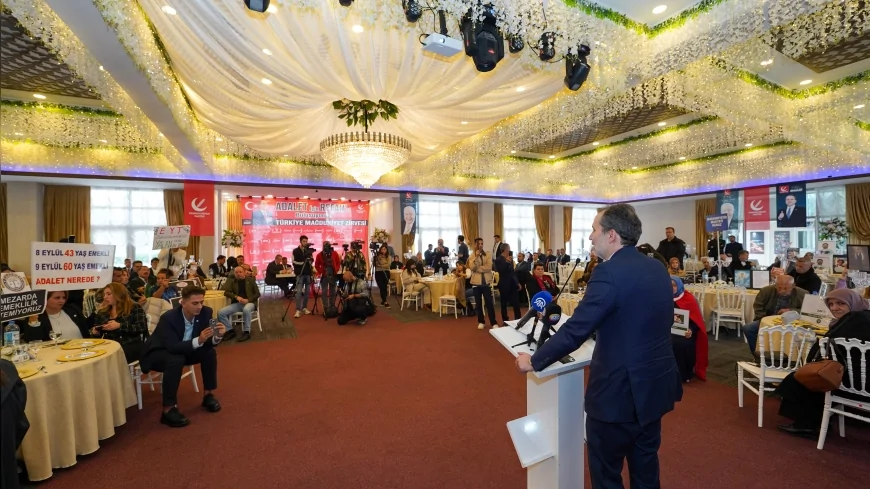 Yeniden Refah Partisi Genel Başkanı Dr. Fatih Erbakan, partisinin Sosyal İşler Başkanlığı tarafından Ankara Mamak Seğmen Konağı’nda düzenlenen “Türkiye Mağduriyet Zirvesi”nde konuştu. Zirvede staj ve çıraklık mağdurları, taşeron işçiler, emekliler, atanamayan öğretmenler, depremzedeler ve çeşitli mağduriyet platformlarının temsilcileri yer aldı. Erbakan, “Bizim için her mağduriyet insani bir sorumluluktur. Milletimizle aramıza mesafe koymayacağız. Biz bu millete ‘sabret’ demek için değil, hakkını vermek için geliyoruz.” dedi.
