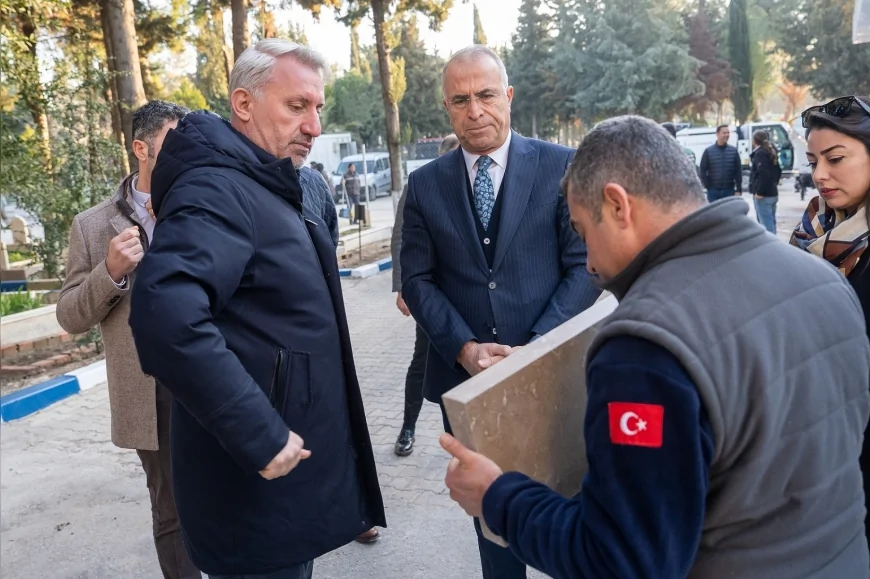 Gaziemir Belediye Başkanı Ünal Işık, İzmir Büyükşehir Belediyesi Mezarlıklar Dairesi Başkanı Ali Kemal Elitaş, belediye başkan yardımcıları, ilgili birim müdürleri ve mahalle muhtarlarıyla birlikte Sarnıç Mezarlığı’nda yürütülen çalışmaları yerinde inceledi.