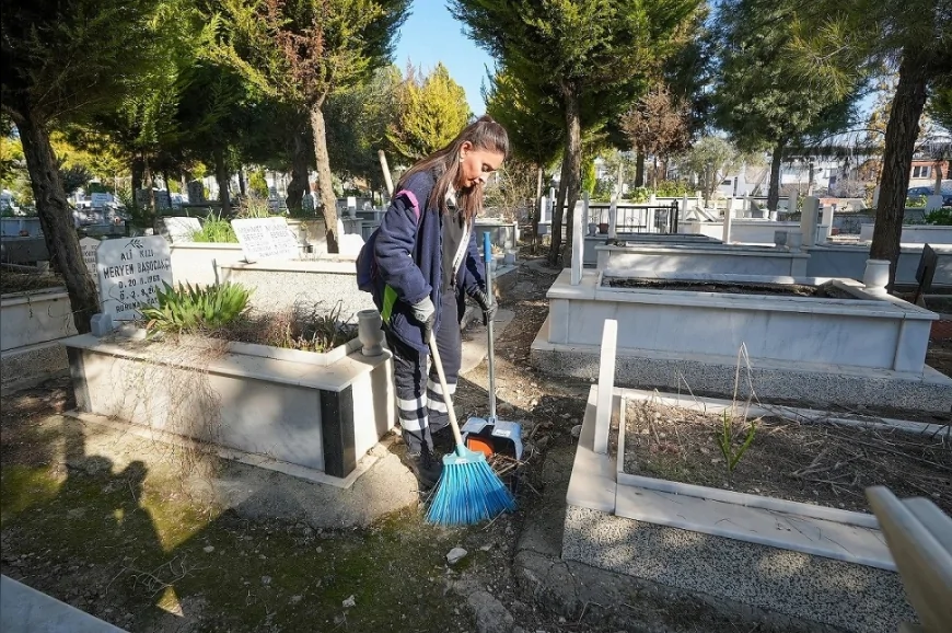İzmir’in Gaziemir ilçesinde Ramazan Bayramı öncesinde mezarlıklarda kapsamlı temizlik çalışması gerçekleştirildi. Gaziemir Belediyesi ile İzmir Büyükşehir Belediyesi’nin iş birliğiyle yürütülen çalışmalar kapsamında ilçe genelindeki mezarlık alanları bayrama hazır hale getirildi.