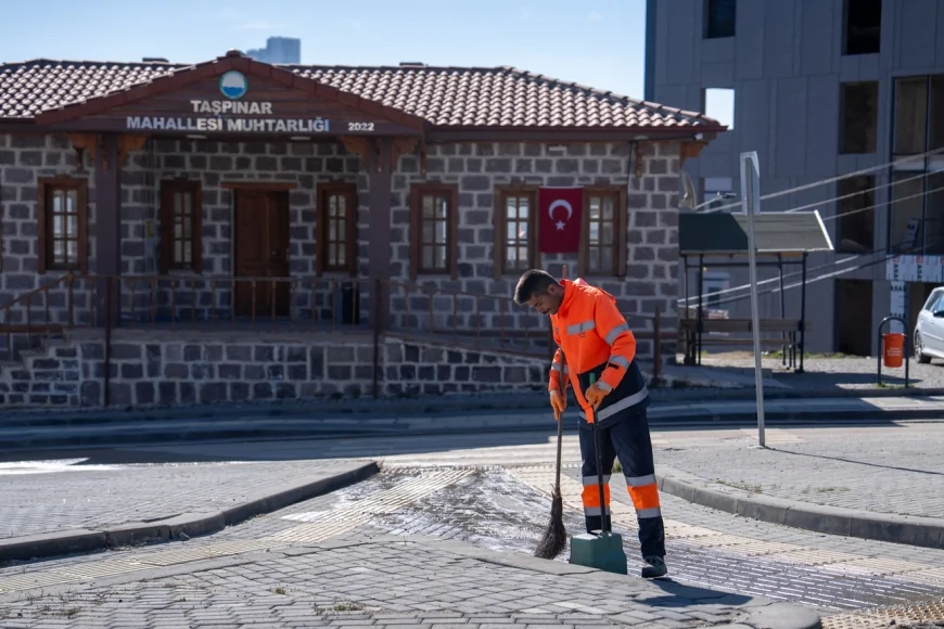 Ankara’nın Gölbaşı ilçesinde belediye ekipleri, Taşpınar Mahallesi’nde cadde ve sokakları kapsayan geniş çaplı bir temizlik çalışması yürüttü. Tazyikli su, süpürme ve üfleme makineleriyle yapılan çalışmalarla mahallede hijyen ve düzen sağlanırken, Belediye Başkanı Yakup Odabaşı vatandaşlara çevre duyarlılığı çağrısında bulundu.