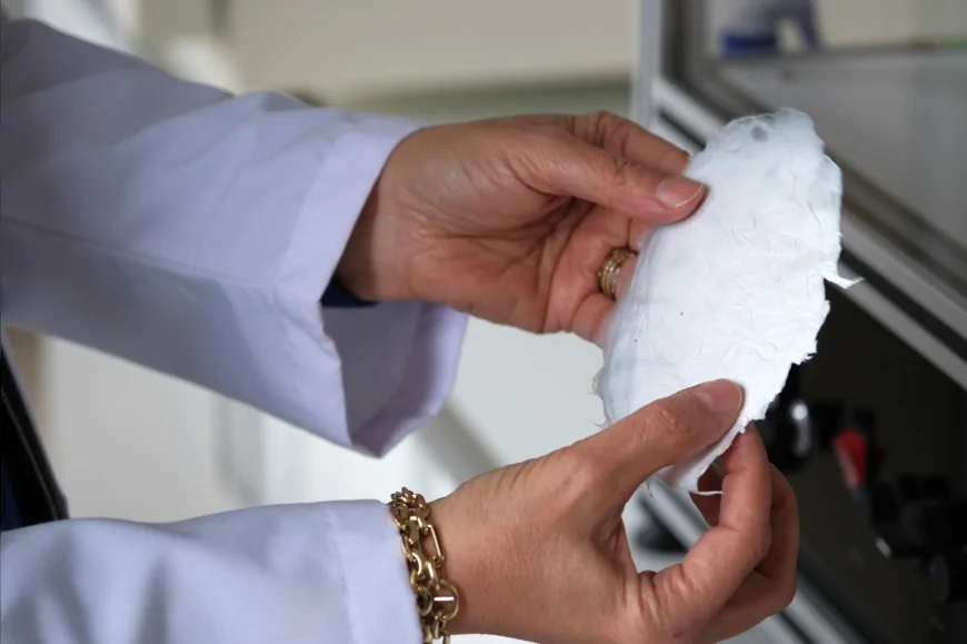 Prof. Dr. Ebru Gökmeşe, Türkiye’de yara örtüsü üretiminin bulunmadığını, bu tür ürünlerin yurt dışından ithal edildiğini belirterek, geliştirilen ürünün tamamen özgün olduğunu vurguladı. Gökmeşe, “İhtisas projemiz kapsamında, altın otu bitkisi özütü ve gümüş katkısıyla antimikrobiyal özelliği yüksek, yeni nesil bir biyomedikal yara örtü malzemesi geliştirdik. Karakterizasyon testleri yapıldı; nano boyut, gözeneklilik, ısı dayanımı ve antimikrobiyal aktivite testleri başarıyla tamamlandı.” dedi.