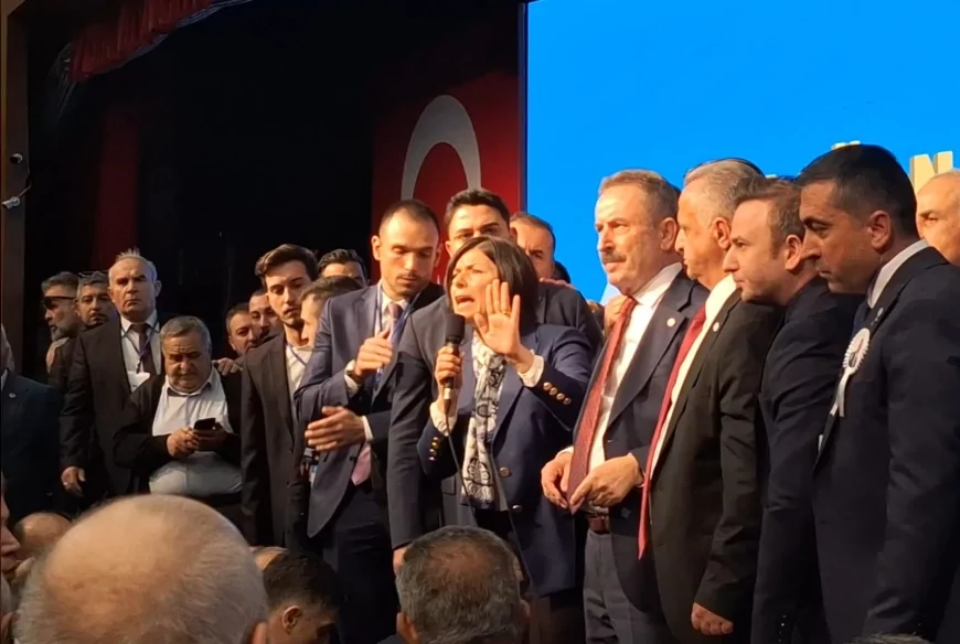 İYİ Parti Ankara İl Başkanlığı 4’üncü Olağan Kongresi Nazım Hikmet Kültür Merkezi’nde partililerin yoğun katılımıyla devam ediyor. İl başkanlığı için mevcut başkan Yener Yıldırım ile Kerem Erdem’in yarıştığı kongrede, konuşmalar sırasında “delegelere imzaların zorla attırıldığı” iddiası gerginliğe yol açtı. Genel Başkan Müsavat Dervişoğlu’nun gündeme ilişkin açıklamalar yaptığı program, kısa süren tartışmaların yatıştırılması sonrası konuşmalar ve birlik çağrılarıyla sürdü.