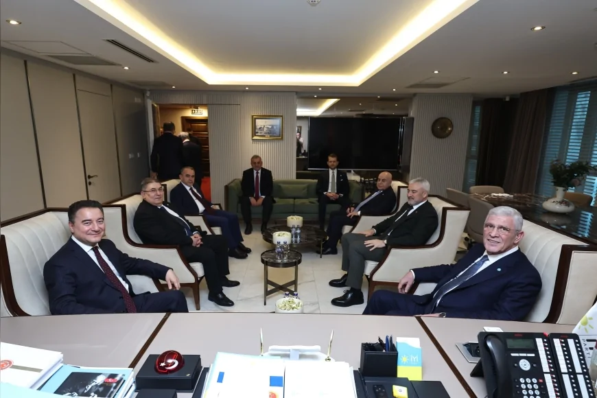 İYİ Parti Genel Başkanı Müsavat Dervişoğlu, DEVA Partisi Genel Başkanı Ali Babacan’ı İYİ Parti Genel Merkezi’nde ağırladı. Görüşme sonrası ortak açıklamada iki lider; ekonomi, hukuk, adalet ve dış politika başlıklarını ele aldıklarını belirtirken, CUMHA Genel Koordinatörü Hüseyin Bekar’ın “üçüncü yol” sorusuna Dervişoğlu “etiket değil, Türkiye’ye fayda” vurgusuyla yanıt verdi; Babacan ise “Siyasette üçüncülük hedef olamaz.” dedi.