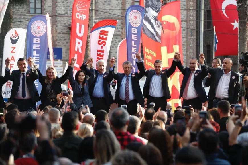 İzmir’de Meslek Fabrikası binasına yönelik el koyma girişimlerine karşı düzenlenen mitingde konuşan İzmir Büyükşehir Belediye Başkanı Dr. Cemil Tugay, binlerce kişinin katıldığı buluşmada hukuksuzluk iddialarını dile getirdi ve “Bu şehir haksızlığı kabullenmez” mesajı verdi.