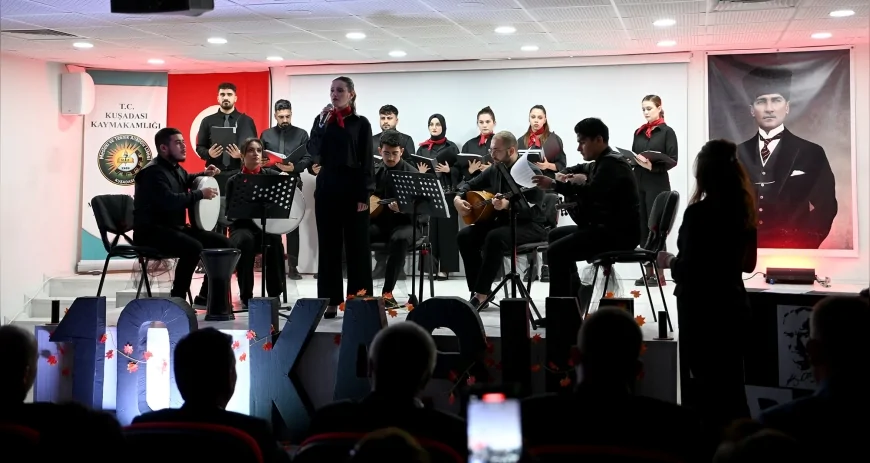 Programın devamında, Kuşadası Mesleki ve Teknik Anadolu Lisesi öğrencileri tarafından hazırlanan “Dersimiz Atatürk” adlı oratoryo sahnelendi. Öğrencilerin performansı, salondaki izleyicilerden uzun süre alkış aldı.