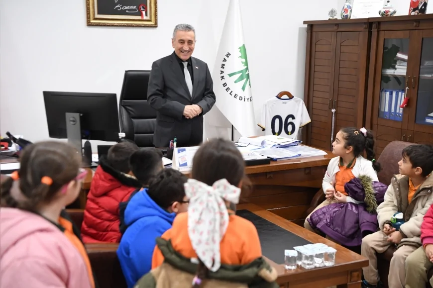 Mamak Belediye Başkan Yardımcıları Erdoğan Doğan, Hüseyin Boran, Fırat Gökçe ve Sibel Emre, öğrencileri makamlarında kabul etti. Başkan yardımcıları, yerel yönetimlerin görev ve sorumluluklarına ilişkin bilgi vererek çocukların sorularını yanıtladı.