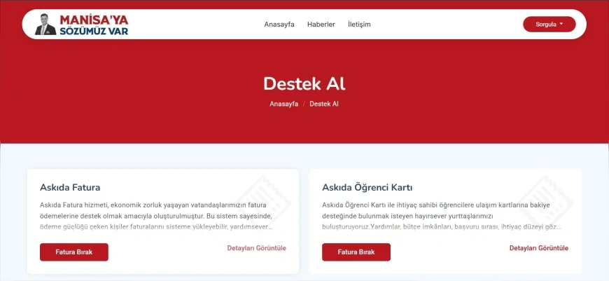 Öğrenciler ve vatandaşlar, seninicin.manisa.bel.tr adresi üzerinden “Askıda Öğrenci Kartı” ve “Askıda Fatura” modüllerine ulaşabilecek. Destek vermek isteyen vatandaşlar, sistemin yönlendirmesiyle belirlenen tutar aralığında otomatik eşleştirme alabilecek ya da listede yer alan başvurular arasından seçim yaparak doğrudan ödeme gerçekleştirebilecek.