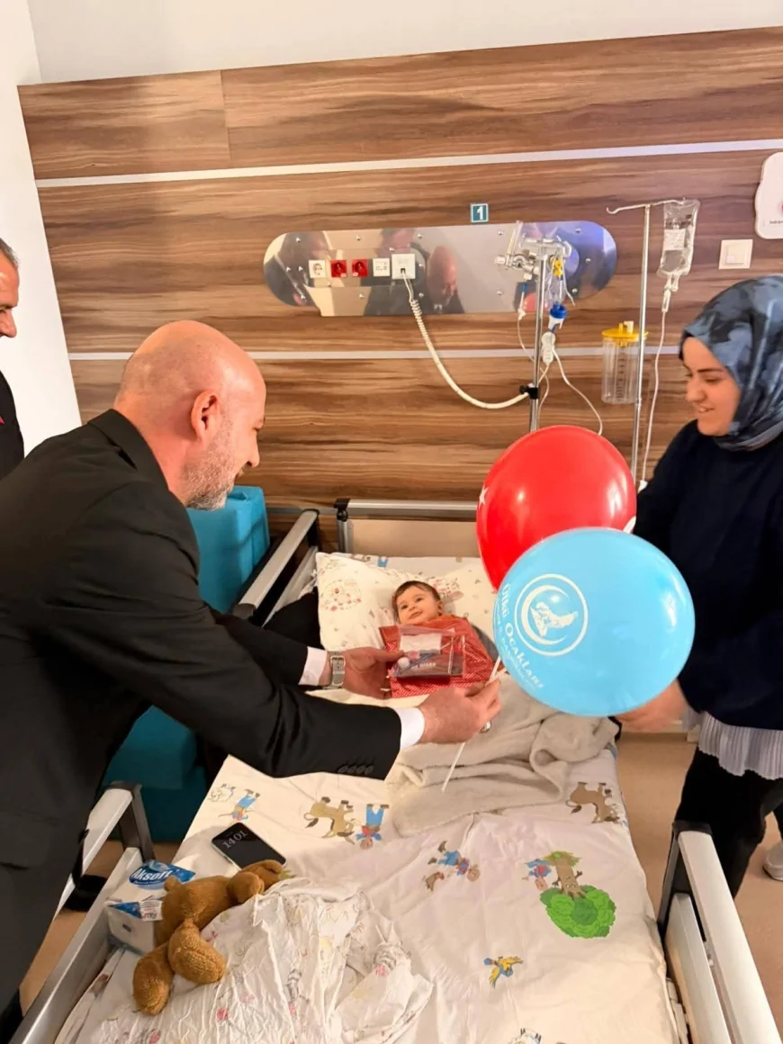 Heyet, hastanede tedavi gören çocuklarla yakından ilgilenerek çeşitli hediyeler takdim etti. Çocukların bayram sevincine ortak olmak amacıyla gerçekleştirilen ziyarette ailelerle de görüşmeler yapıldı.